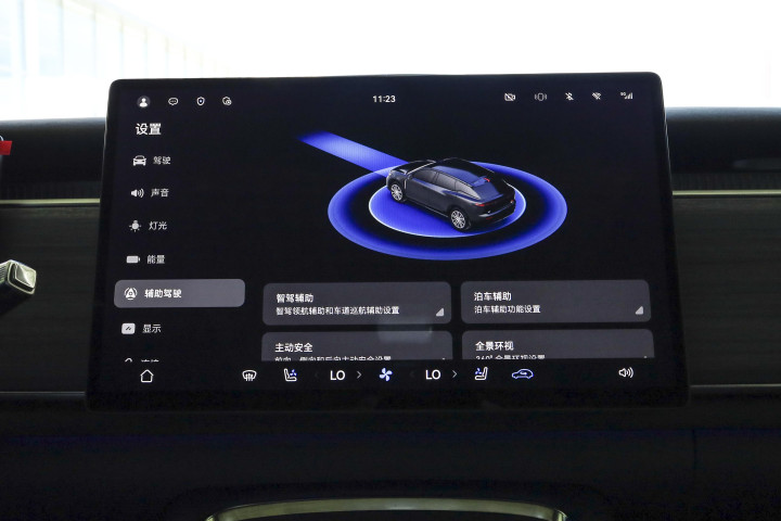 如果说辅助驾驶是保驾护航的"老司机",那鸿蒙座舱5系统就是善解人意的"智能管家"。全新岚图知音用高通骁龙8295芯片打底,再加上鸿蒙系统的优化,把车机的流畅度和实用性拉到了新高度。15.05英寸的OLED曲面滑移屏是个亮点,主驾需要操作时往驾驶位靠拢,副驾想看电影时移到中间,这种灵活调整的设计解决了传统中控屏"顾此失彼"的问题。实测屏幕滑动时没有丝毫卡顿,打开导航再切换音乐APP,整个过程响应速度快至0.8秒,和用手机操作一样顺手。AR-HUD抬头显示更是加分项,导航路线、车速、辅助驾驶提示都清晰投射在前挡风上,不用低头就能获取关键信息,大大提升了行车安全。